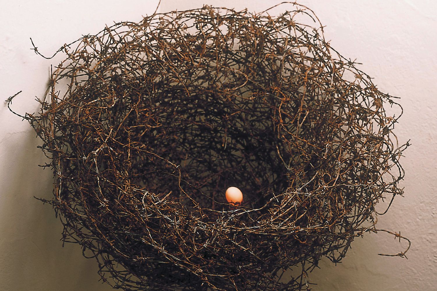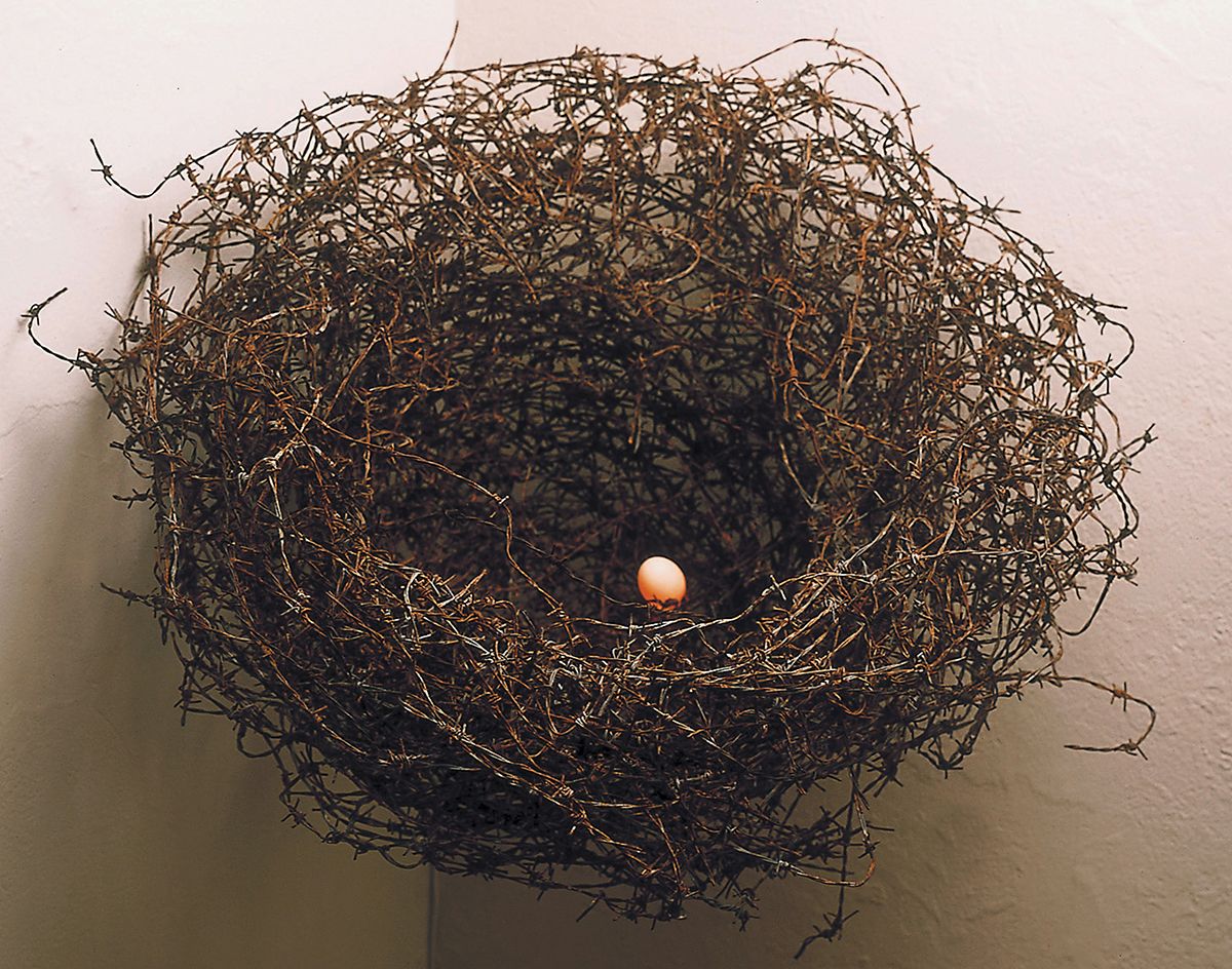 MATERIAUX Fil barbelé, ampoule halogène et œuf en résine